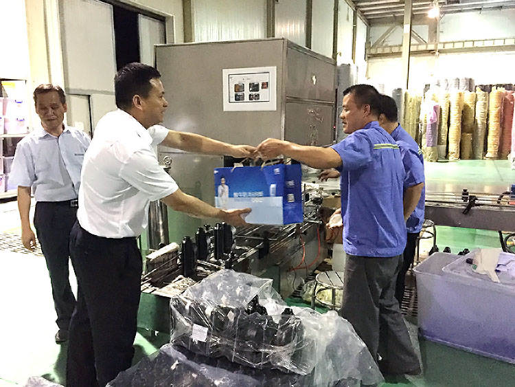 ? ? ? ?何景奇副書記拉著員工的手深情地說到“真的辛苦你們了!正是由于你們的無私奉獻(xiàn)才有了高潤的發(fā)展,謝謝你們!”何書記還強(qiáng)調(diào),希望大家在趕生產(chǎn)任務(wù)的同時,要注意自我調(diào)節(jié),緊記安全生產(chǎn),保證產(chǎn)品質(zhì)量,為公司的發(fā)展在不同崗位貢獻(xiàn)出自己的力量。員工們對公司領(lǐng)導(dǎo)的及時慰問感到十分鼓舞,同時表示會按時保質(zhì)完成生產(chǎn)任務(wù)。