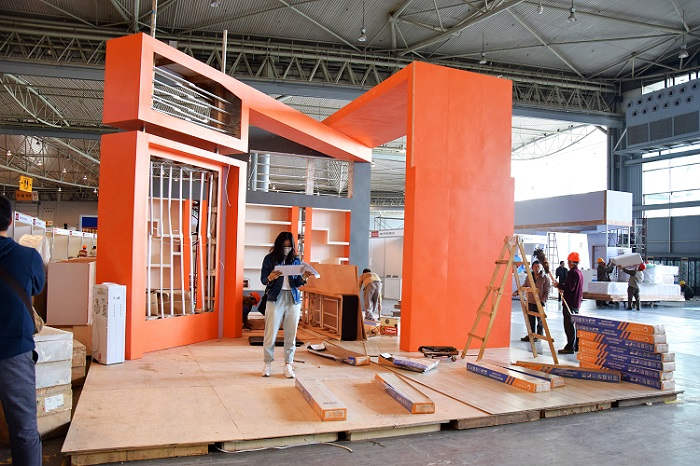 4.16,搭建開始。成都的工人和和氣氣,慢悠悠,負責搭建的小伙伴,一點也不敢放松監督。
