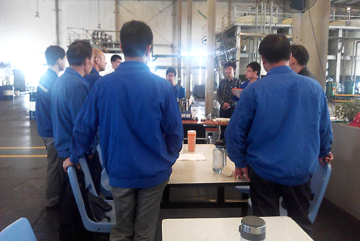 ? ? ? ? 4月19日,調(diào)合車間主任在調(diào)合車間召開一項(xiàng)會(huì)議,會(huì)議是關(guān)于導(dǎo)熱油爐系統(tǒng)安全運(yùn)行項(xiàng)目的完善,車間領(lǐng)導(dǎo)及部門員工參加了會(huì)議。