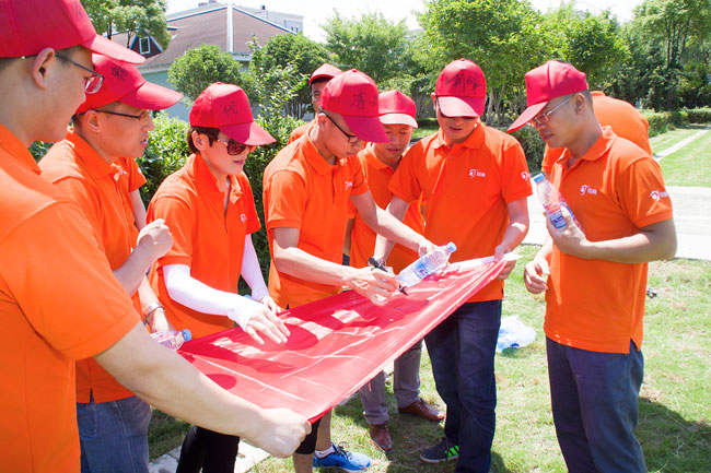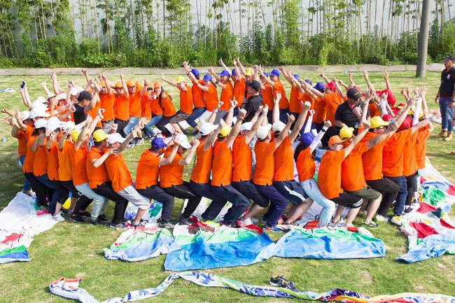 擰成一股繩,我們的力量足以支撐4個人的體重在繩上行走,在繩上行走的伙伴正象征著我們的領導層,他們需要相信伙伴們的力量,而底下伙伴的支持才是成功的關鍵!