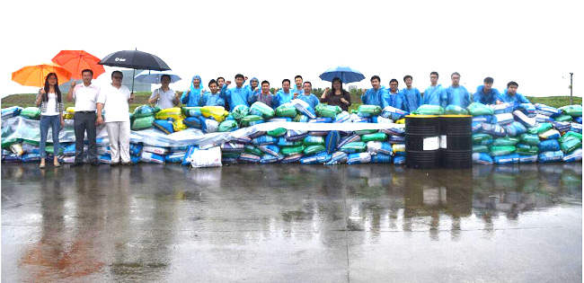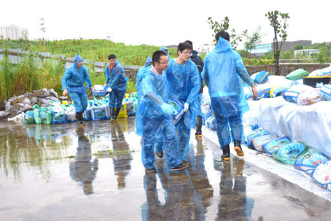 ? ? ? ? 在公司領導帶領和指導下,防汛抗洪小組在雨中各司其職、主動配合、積極投入,切實做到了召之即來、來之能戰、戰之能勝。江蘇司能生產總監陳鷹主動請纓,全天24小時值守在現場;司能第六黨小組組長于增政帶領全體黨員利用休息日提前做好應急物資準備工作;司能全體員工為了避免物資損失連夜奮戰……這些不顧個人得失的精神,正是我們在不斷傳遞和保持的正能量!